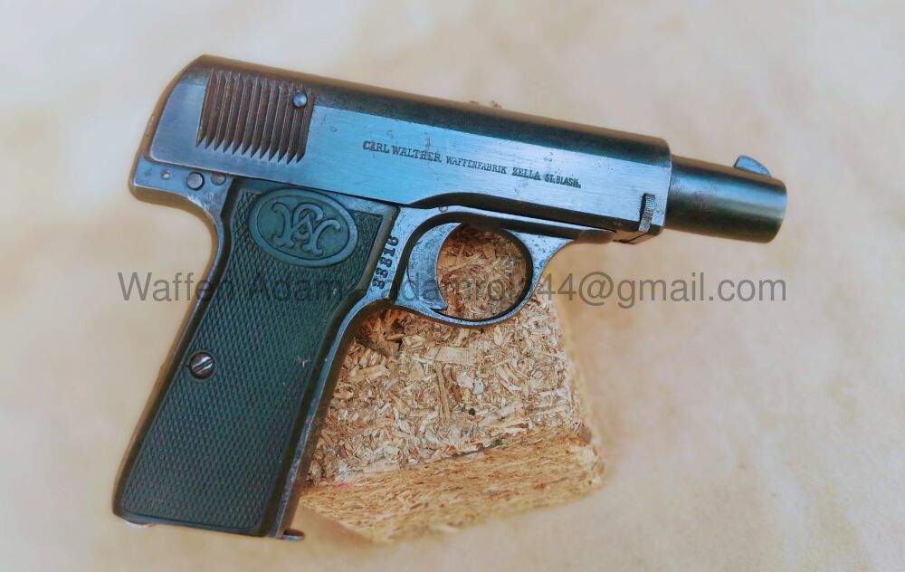 Seltenes Walther Übergangsmodell 3/4, 2.Variante mit Sägezahn Griffrillen. Gesuchte Sammler Waffe.