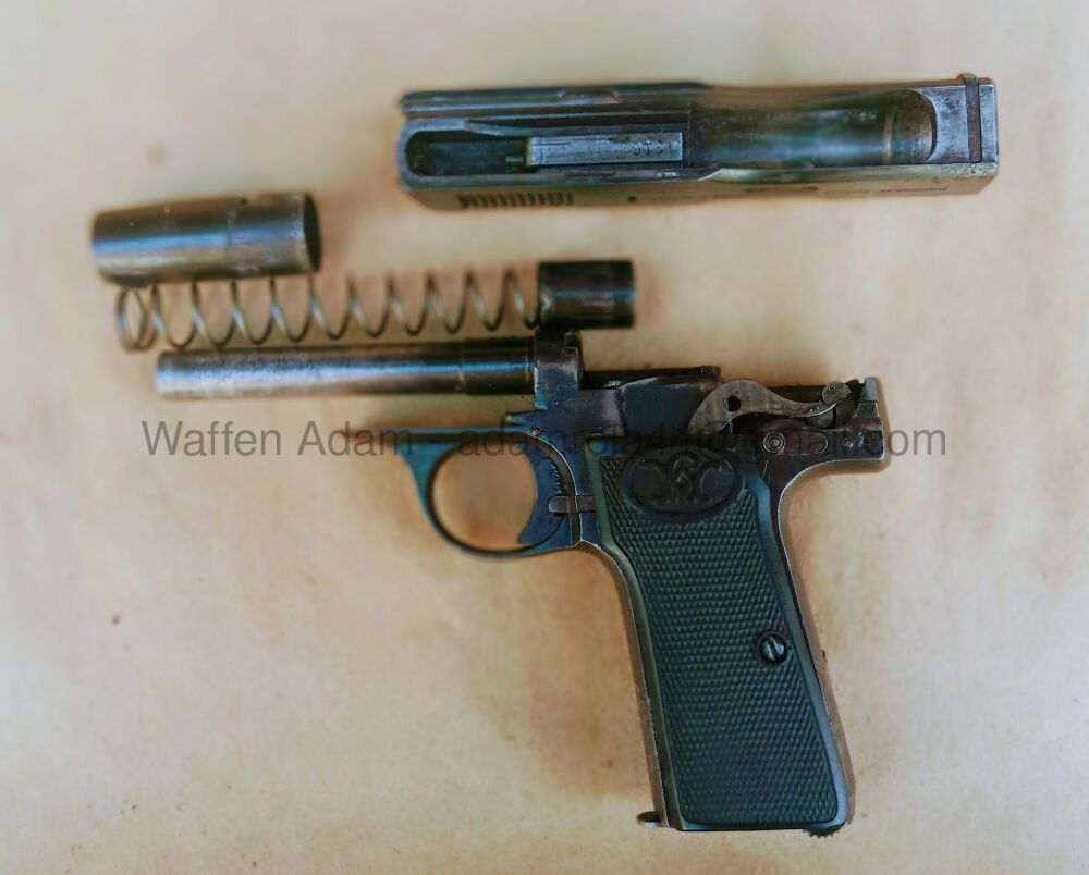 Griffschalen mit CW Logo, Lauf noch gut. Früher Schlitten, ohne eingeschlauftes Visier. Aussenliegende Abzugstange.