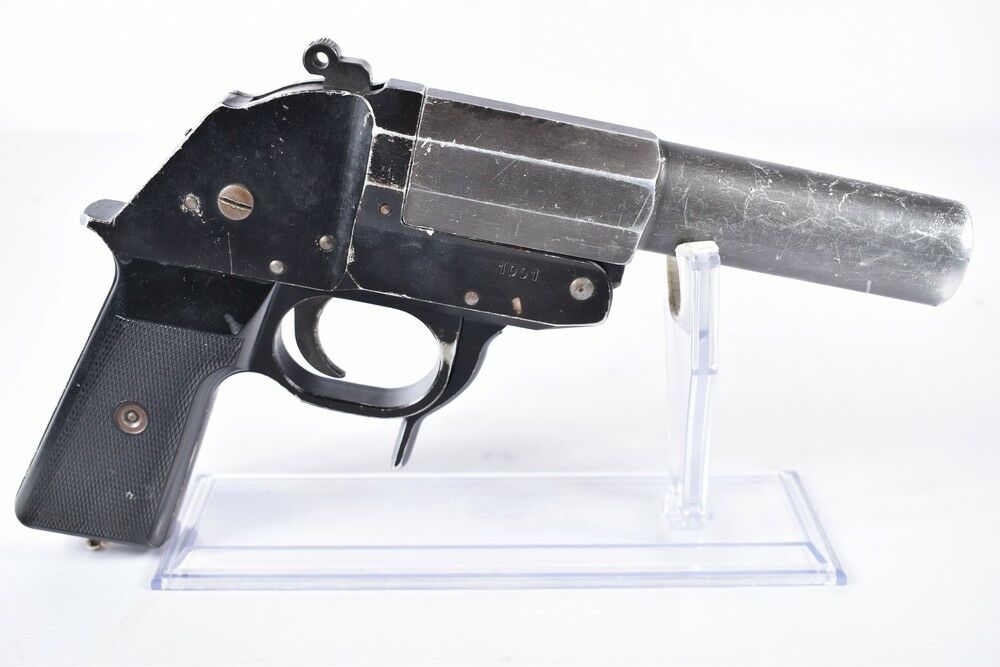 Diese Suhl LP1 4 Signalpistole hat eine Gesamtlänge von 27 cm und eine Lauflänge von 16,5 cm. Sie wiegt 820 g und befindet sich im Zustand 4-, was starke Gebrauchsspuren bedeutet. Die Signalpistole is... ...weiterlesen