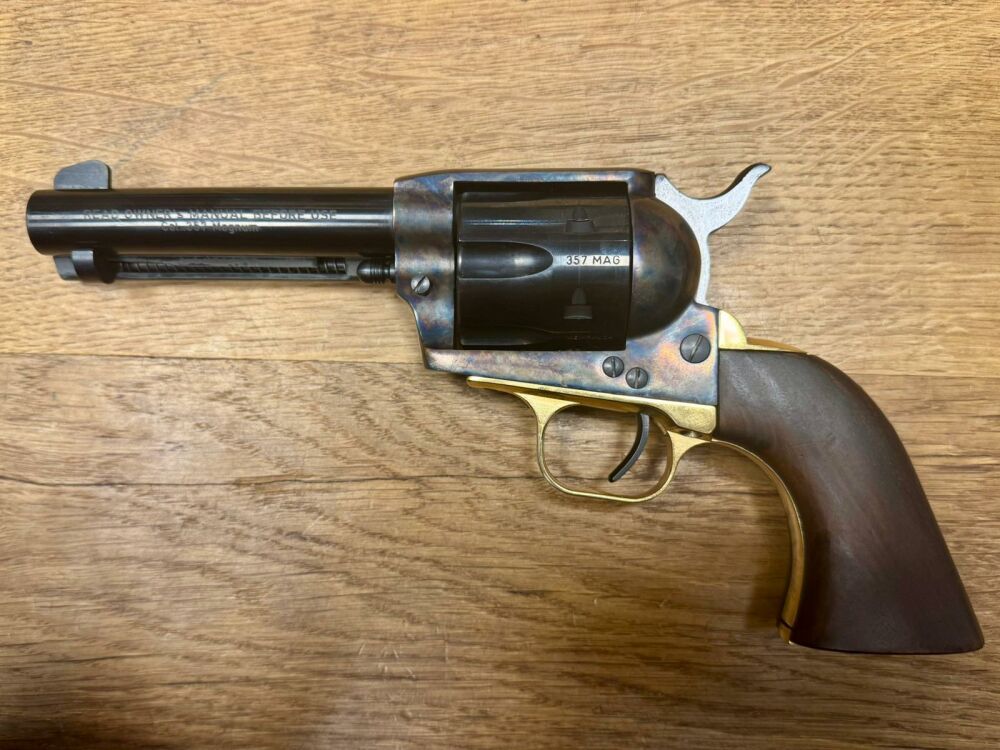 Verkauft wird ein: Revolver, Weihrauch, Western Single Action, Kal.: .357Mag. Der Revolver hat Holzgriffschalen und einen buntgehärteten Rahmen. Die Waffe ist in sehr gutem gebrauchtem Zust... ...weiterlesen