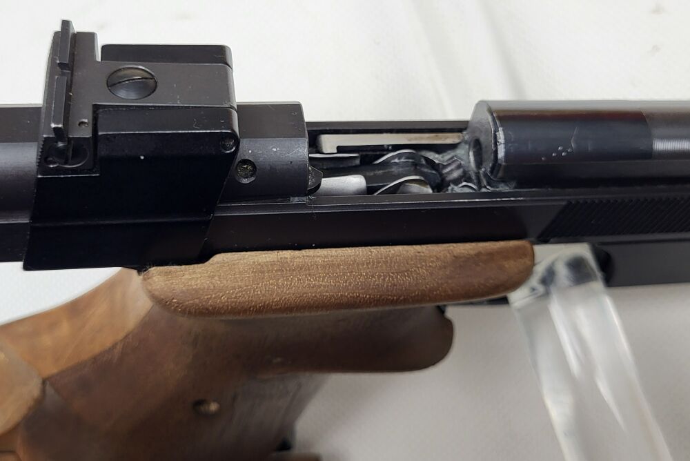 Angeboten wird eine Hämmerli 215 Sportpistole im Kaliber .22lr. Zustand optisch gut bis sehr gut mit nur kleinen Gebrauchsspuren, technisch sehr gut. Mit Rechtsgriff Größe M-L. ...weiterlesen