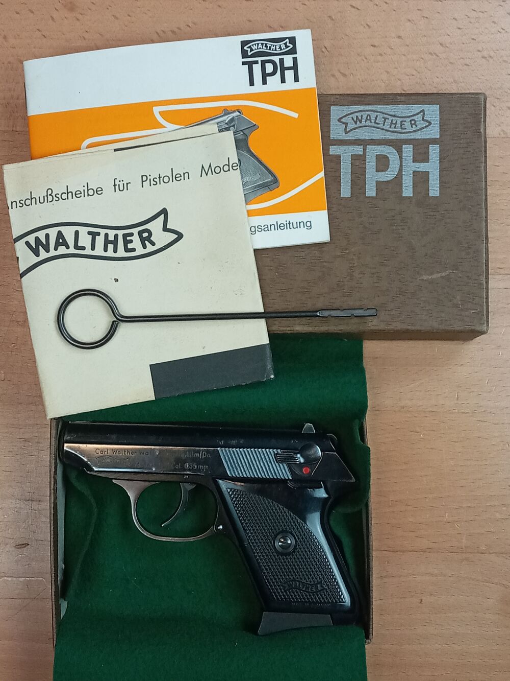 Walther Model TPH Kaliber 6,35 Browning Monogramm "JJ" auf der Vorderseite des Griffstück Bedienungsanleitung Schussbild Originalkarton Putzstock ...weiterlesen