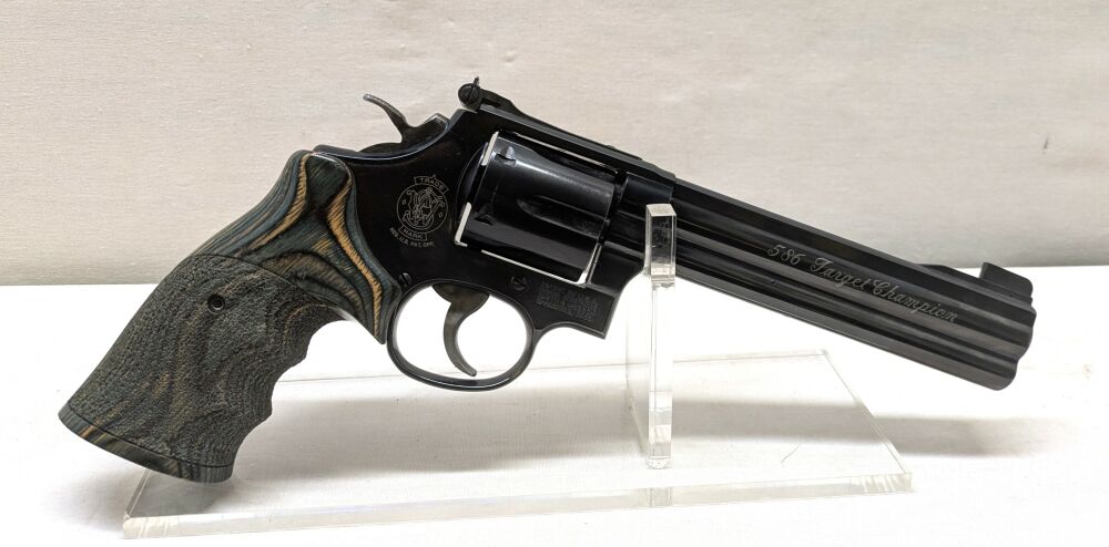 Smith & Wesson Revolver Modell 568 Target Champion Lauflänge 6" Trommel 6 schüssig Visierung verstellbar Schichtholzgriff ...weiterlesen