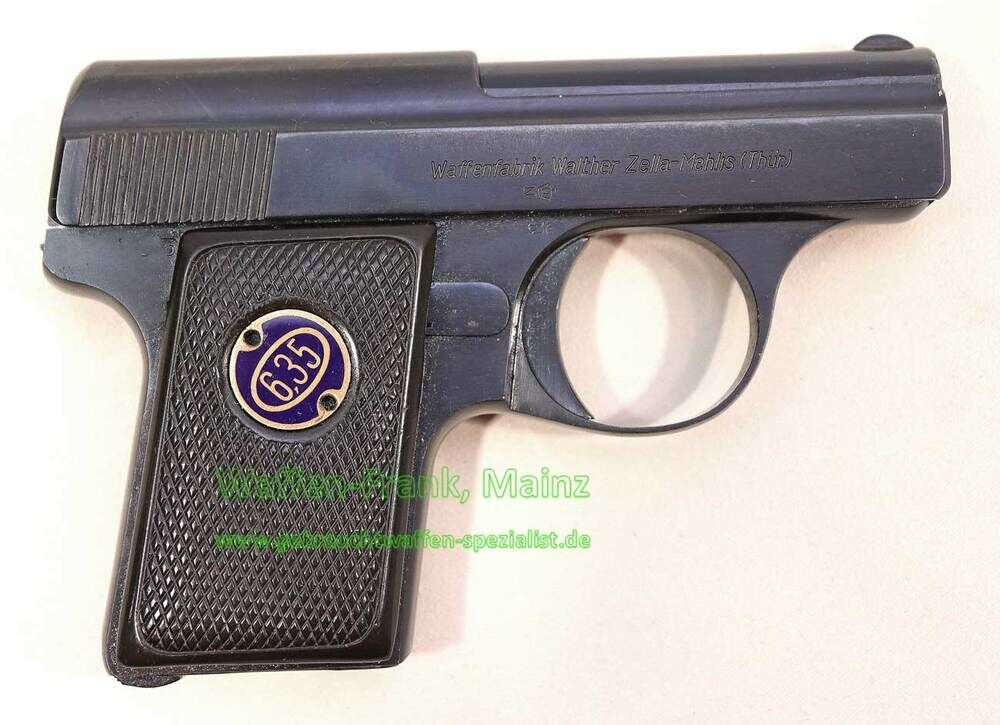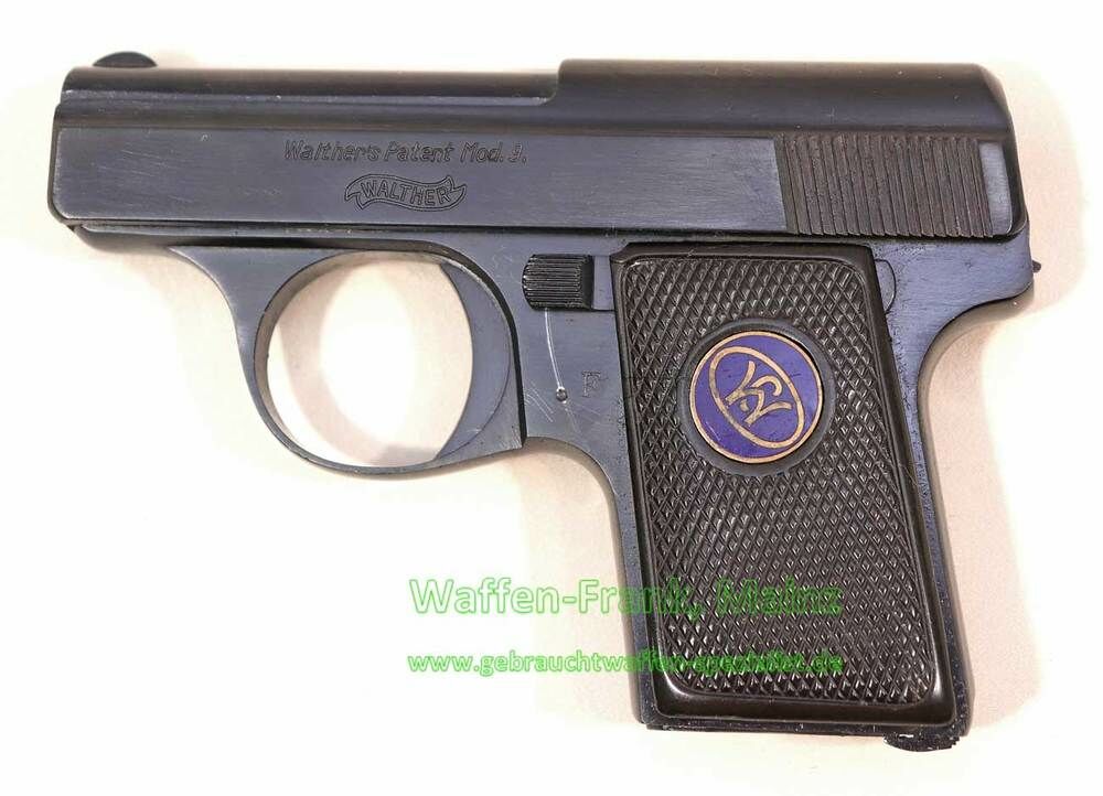 perfekter Originalzustand, mit Beschuss N mit Krone, noch in Originalkarton mit Bedienungsanleitung und Putzstock sowie 2 vernickelte Exerzierpatronen, (die kleinste Taschenpistole die Walther jemals fertigte von 1921-1943), Lauf blank....ein Stück zum Sammlen und Schießen....Rarität EUR 895,-