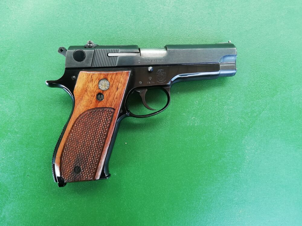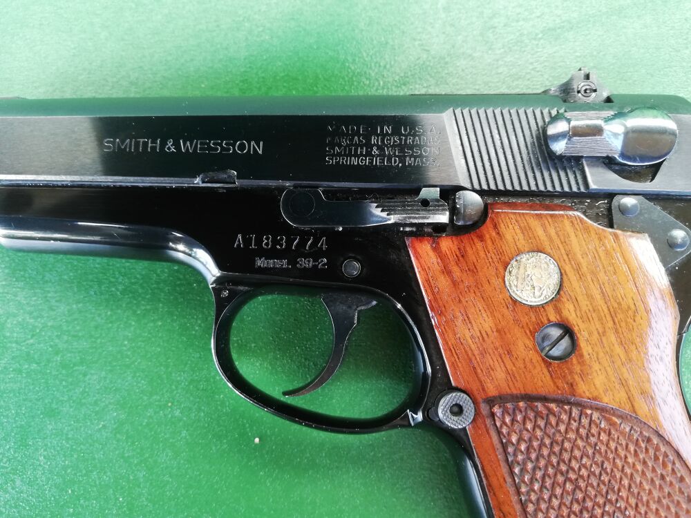 Pistole Smith&Wesson Mod.39-2 - Kal. 9mmLuger - Ll "5 - im orig. Karton ng. - 2 Magazine extra - Korn wurde angepasst, siehe Bilder ...weiterlesen