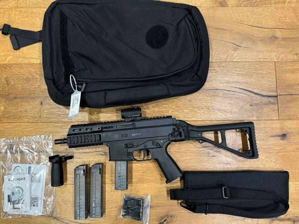 Im Lieferumfang enthalten ist ein Aimpoint Micro T1, eine klappbare Visierung, drei Magazine zu je 20 Schuss, eine Waffentasche, Putzzeug und eine deutschsprachige Bedienungsanleitung.