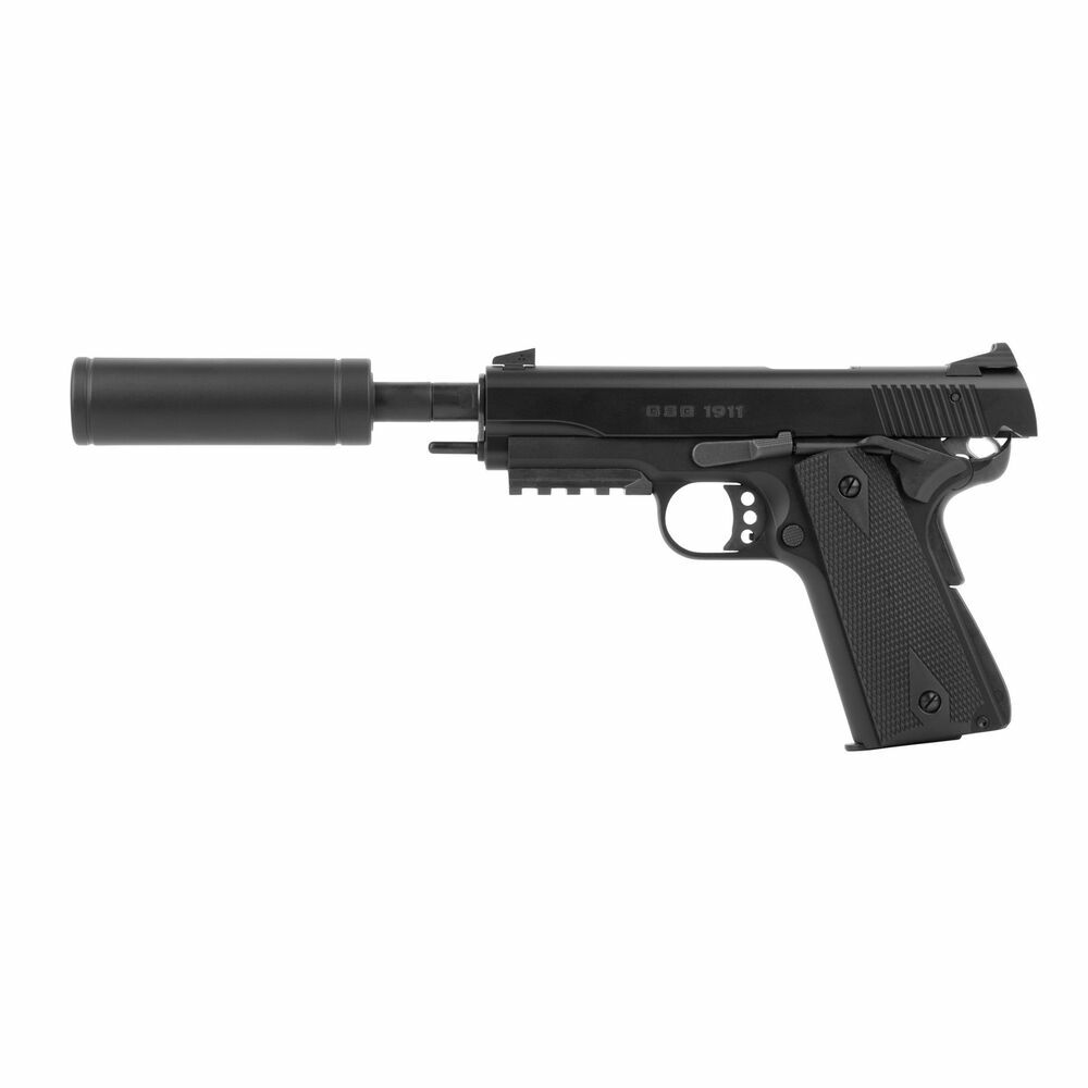 Die GSG 1911 besitzt ein Metallmagazin und kommt mit einer verstellbaren Visierung. Der Lauf ist ausgestattet mit einem Mündungsgewinde M9x0.75.