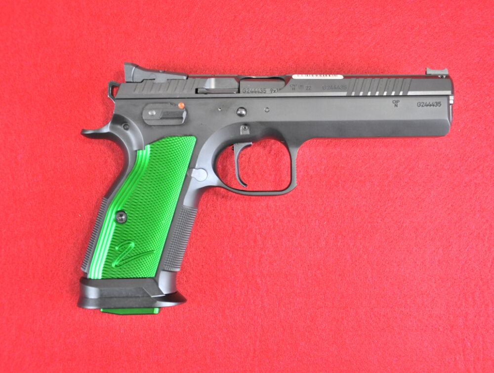 CZ TS 2 Racing Green SA 9mm Luger optimiert für die IPSC Standard Division verbesserte Ergonomie höhenverstellbares Metallvisier Single Action Abzug KEIN Standardversand ! Versand nur... ...weiterlesen