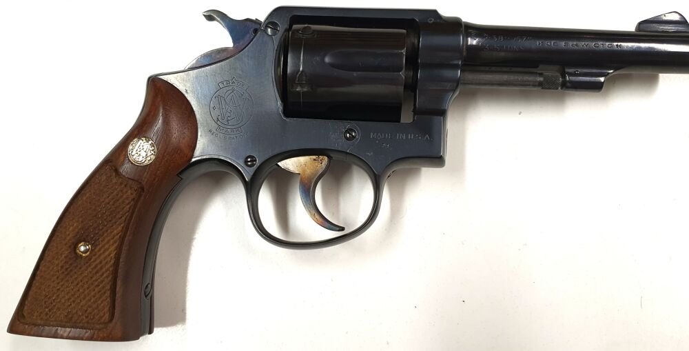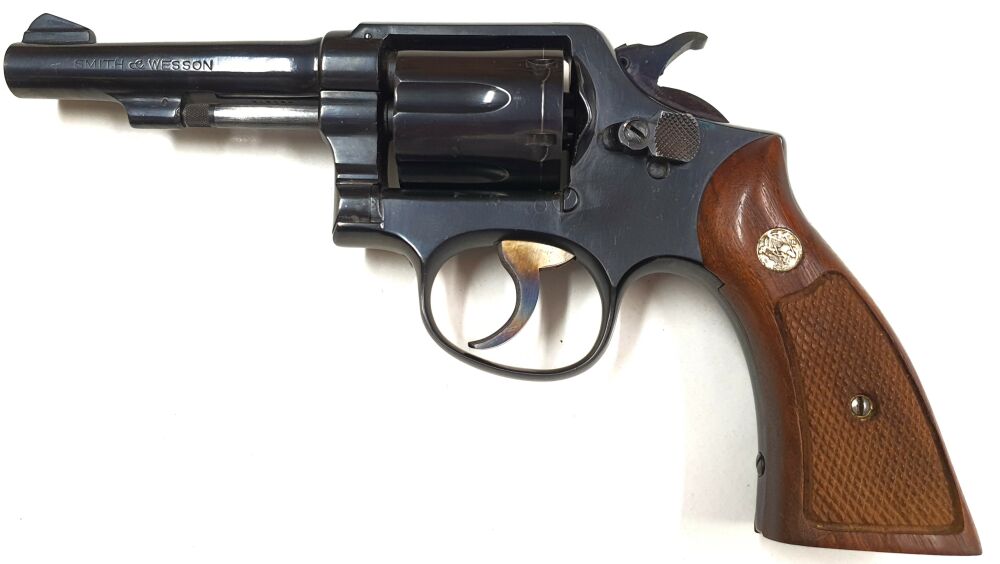 Gebrauchtwaffe: S&W Smith & Wesson Special CTG im Kaliber .38Special, gebraucht Klassischer sechsschüssiger Revolver mit leichten Gebrauchsspuren. Brünierter Stahlrahmen und Holzgriff... ...weiterlesen