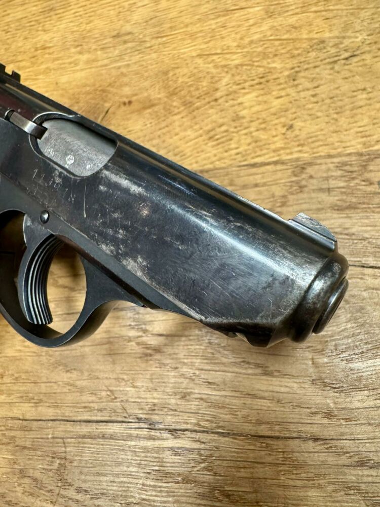 Die Waffe ist in gebauchten Zustand, siehe Fotos. Brünierung an vielen Stellen abgenutzt, kein Rost.