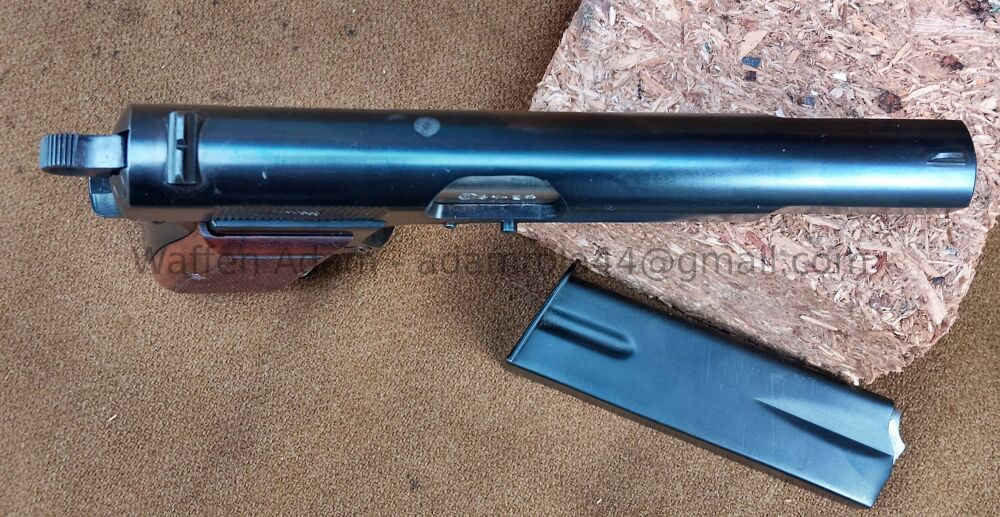 Hochwertige Ganzstahlwaffe. 13 Schuss doppelreihiges Stangenmagazin.
