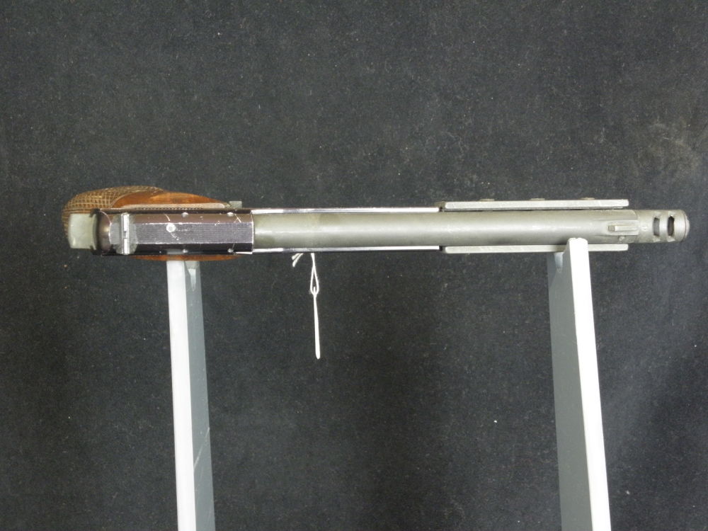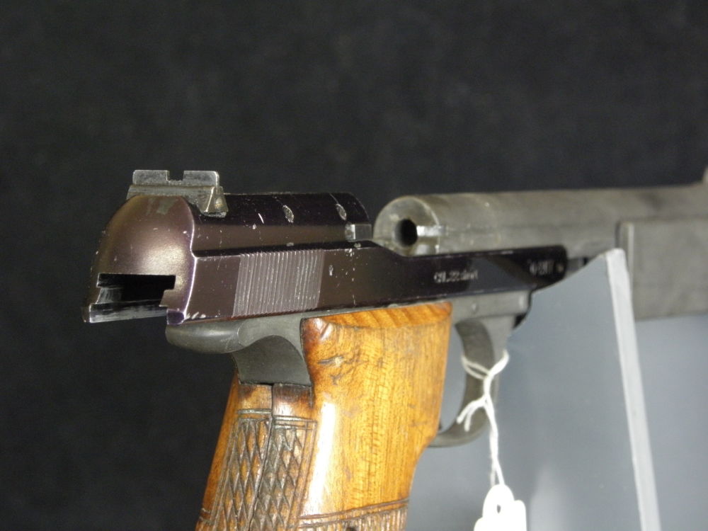 relativ seltene Pistole für den Sammler, Liebhaber od. Freizeitschützen. LL 185 mm zuzügl. Kompensator. Schlitten aus Dural mit lackschäden siehe Fotos, Lauf gut u. blank. Funktion o.k. Waffe hat kei... ...weiterlesen