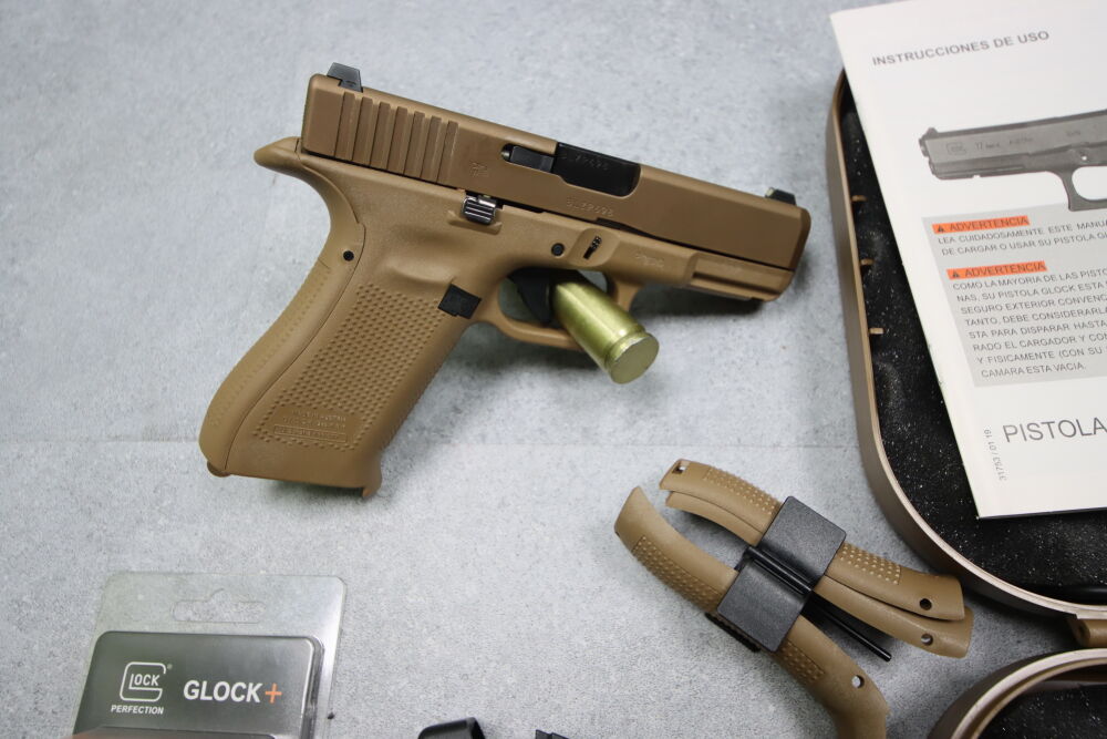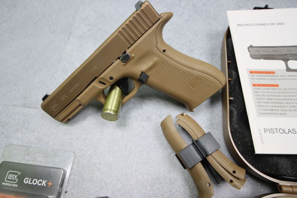 Verkaufe eine zuverlässige Glock 19X im markanten Farbton Coyote (Sandfarben). Die Waffe kombiniert das Full-Size-Griffstück der G17 mit dem kompakten Schlitten der G19 – die perfekte „Crossover“-Pistole.