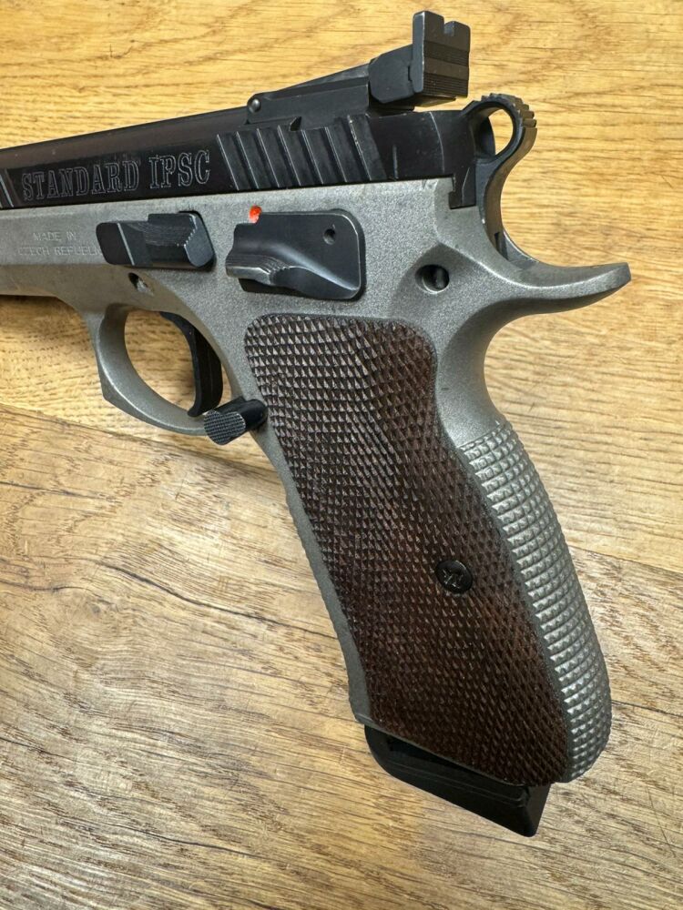 Verkauft wird eine: Pistole, CZ, 75 Standard IPSC, Kal.: .40S&W Die Waffe hat Holzgriffschalen und einen verlängerten Magazindrücker. Ein Einsteckmagazine sind vorhanden. Die Waffe i... ...weiterlesen