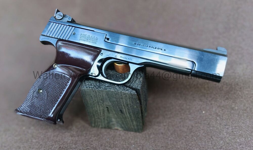 Hochwertige Sportpistole aus dem Hause Smith & Wesson, gem. Datenrecherche müsste die Waffe noch aus den 60igern stammen. Die Ganzstahl Waffe S&W, Modell 41 zeichnet sich besonders durch die ... ...weiterlesen