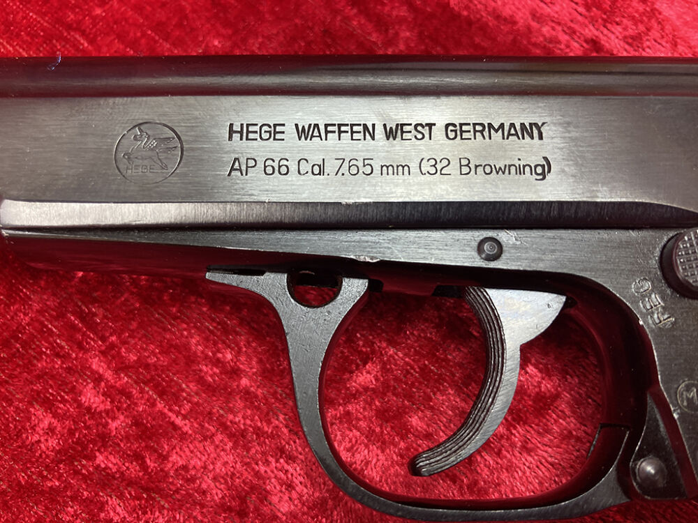 Diese wenig benutze Pistole Hege (PP-Nachbau) stammt von einer Jägerin, die Ihr Hobby aufgegeben hat. Der Beschuß fand 1968 in Ulm statt.
