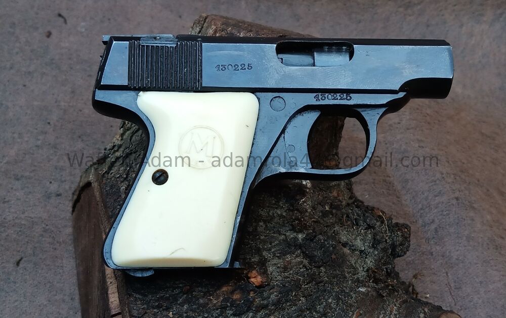 Seltene belgische Melior Taschenpistole, sog. "Neues Modell", vermutlich letzte Fertigung um ca. 1957. Kaum bekannt! Nummerngleich, sehr schöner Zustand, Brünierung nahezu vollständig erhal... ...weiterlesen
