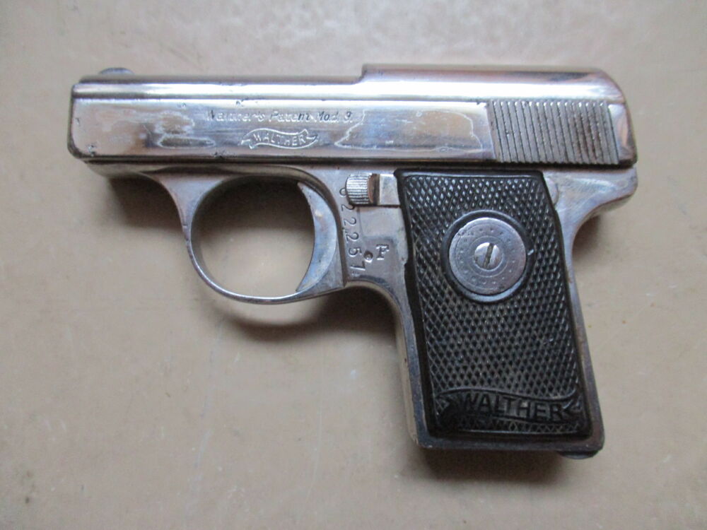 Pistole Walther Zella Mehlis Mod. 9 in Nickelausführung. Kaliber 6,35 mm.