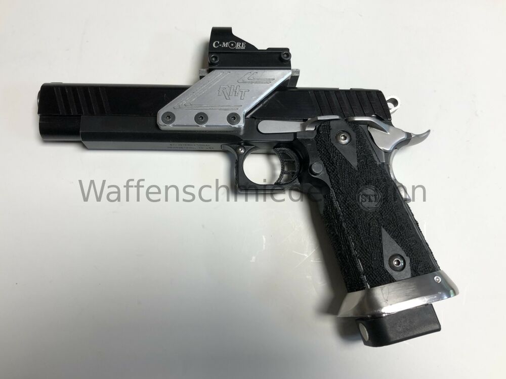 STI Pistole, Eagle LWD 9mm Luger Wechselsystem Kühn 9mm 5 Zoll mit Kompensator Lauf Wechsellauf Kühn 9mm 5 Zoll Zubehör Griffstück: Montage RHT mit C-More RTS 3.5 MOA, Magazintrichter und ge... ...weiterlesen