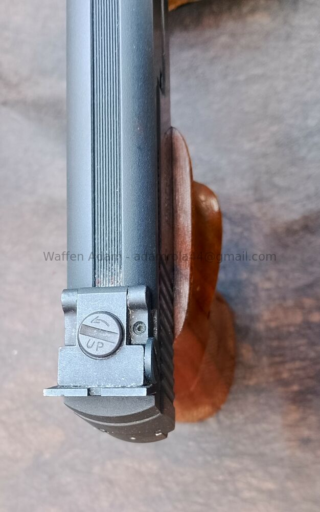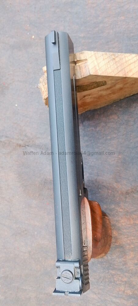 Seitlicher Magazinhalter, für links - / Rechtsschützen geeigneter Nussholz Griff mit Daumenauflage. Gebrauchtwaffe mit altersbedingten Kratzern und Flecken möglich, Bilder sind Bestandteil der Beschreibung, Irrtum vorbehalten. NP ca 2300€!!
