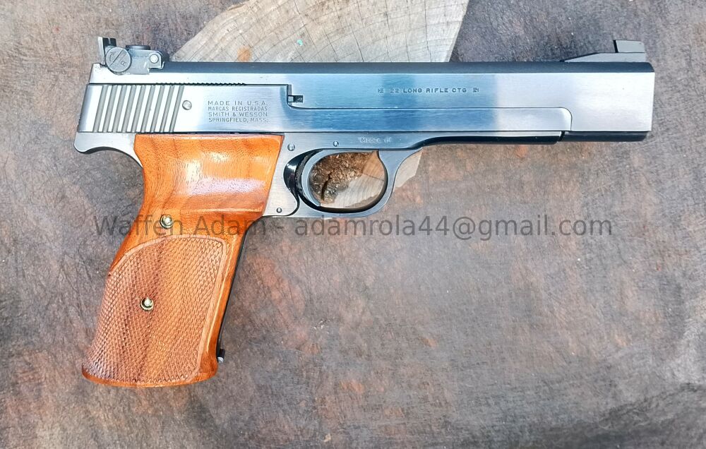 Smith & Wesson 41 Sport Pistole, 10 Schuss Stangenmagazin, beliebte hochwertige Ganzstahlwaffe mit hervorragender, noch aus den 70igern bekannten Qualität und Verarbeitung. Weicher ausgezeichneter... ...weiterlesen