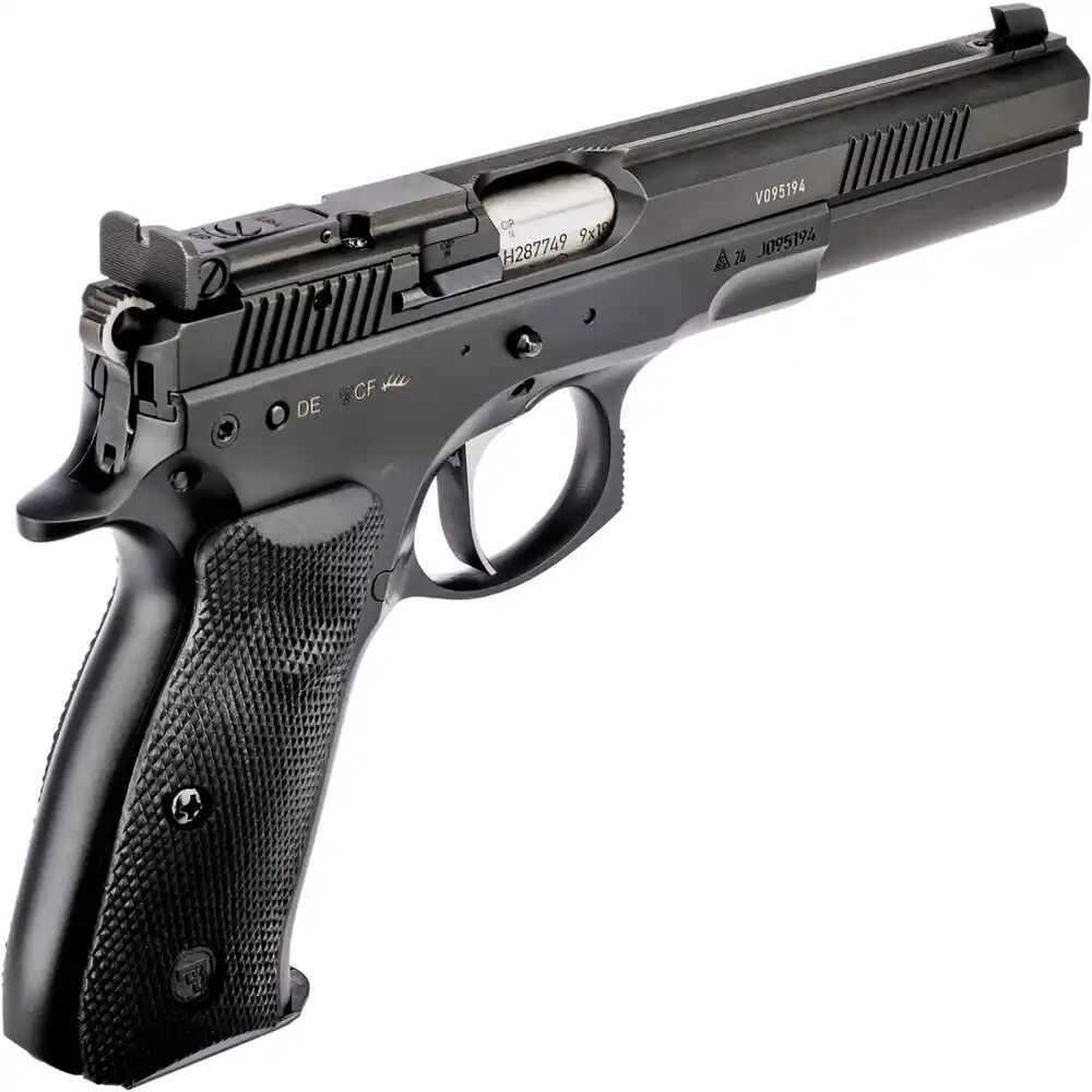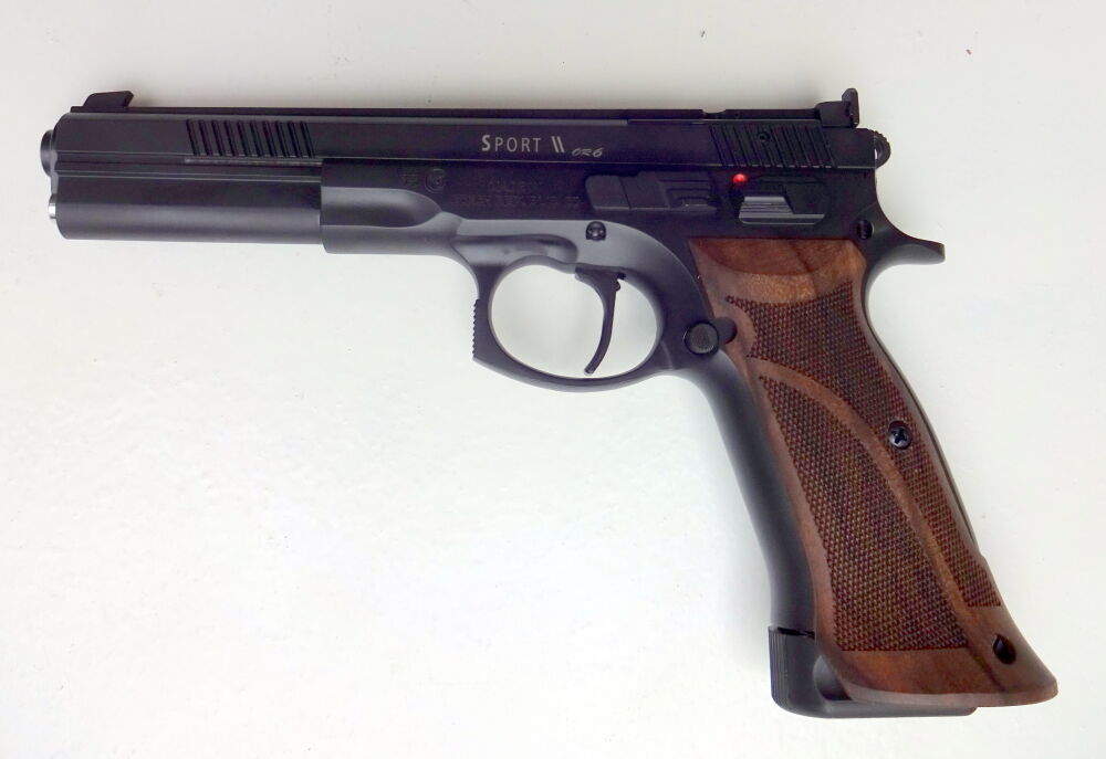 Perfekte Handhabung und AnpassungsfähigkeitEin besonderes Highlight der Pro Tuning Pistole 75 Sport II OR ist der überarbeitete Abzug (SA) mit Triggerstop, der eine schnelle und präzise Schussabgabe ermöglicht. Die Pistole verzichtet auf eine Magazinbremse, was die Handhabung noch komfortabler gestaltet. Dank der original Gummigriffschalen liegt die Pistole zuverlässig und angenehm in der Hand, sodass man sich voll und ganz auf das Ziel konzentrieren kann.