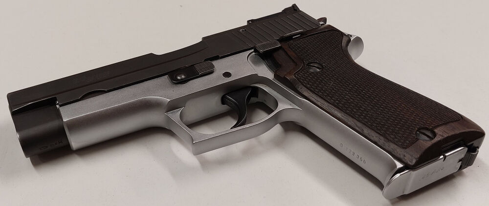Gelegenheit Gebrauchtwaffe DEFEKT Halbautom. Pistole SIG SAUER P220 Bicolor Schwarz/Silber im Kaliber .45ACP Inkl.Reservemagazin und Holster. Leider ist der Schlitten gerissen, daher Verkauf ... ...weiterlesen