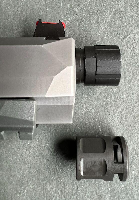 Eine Mündungsbremse (Mini Compensator) liegt als Zubehör bei (Bild).
