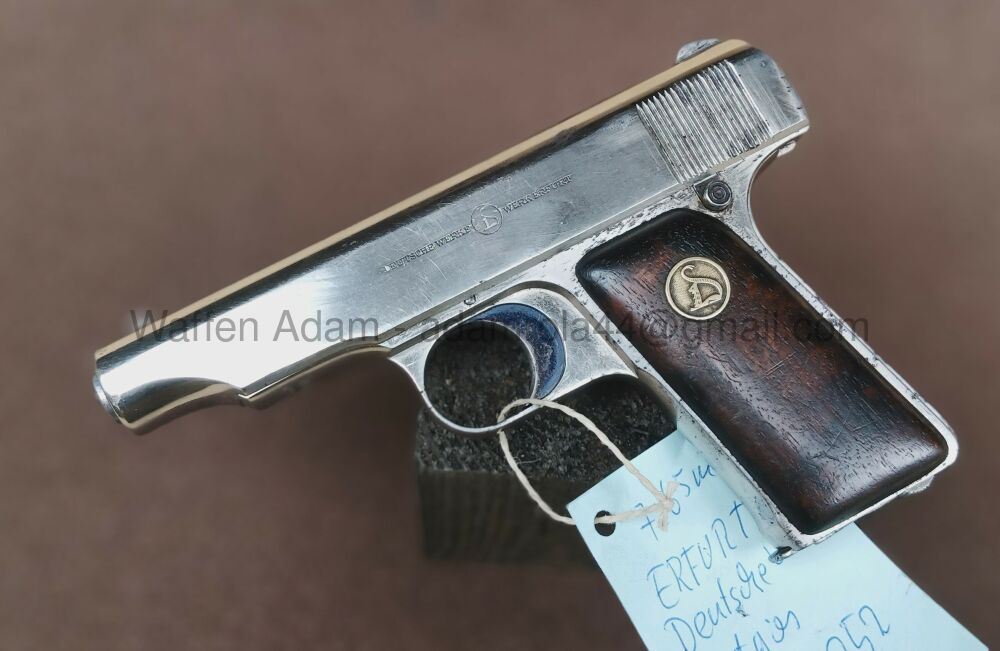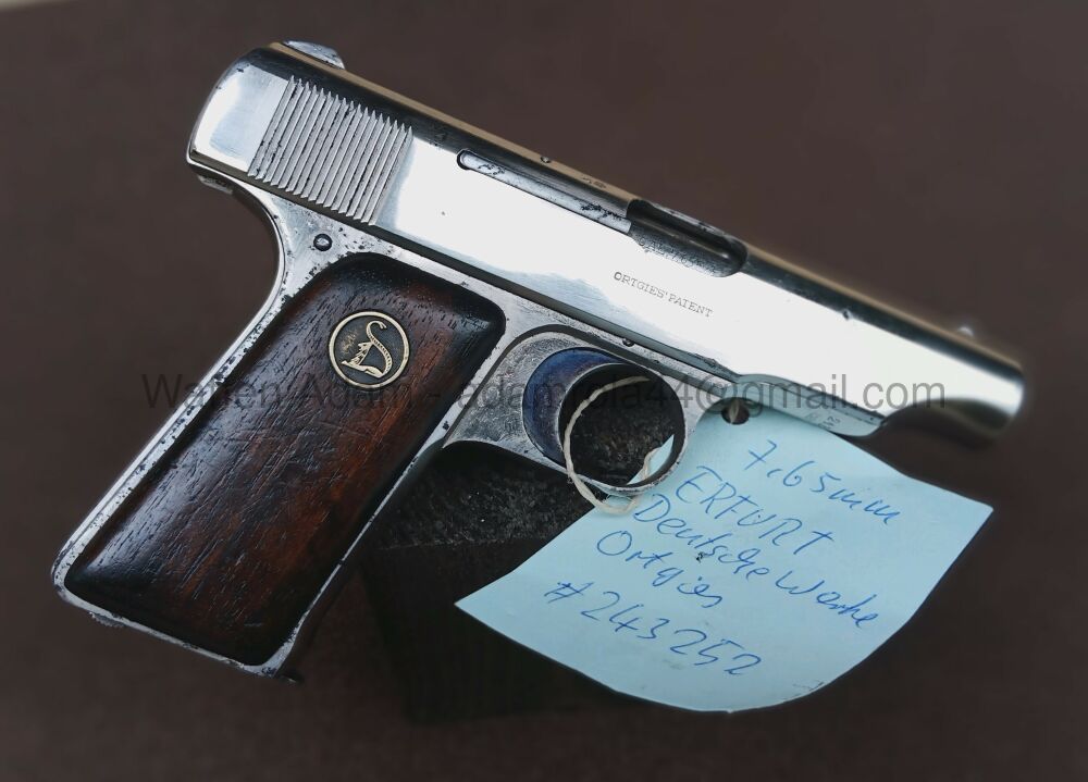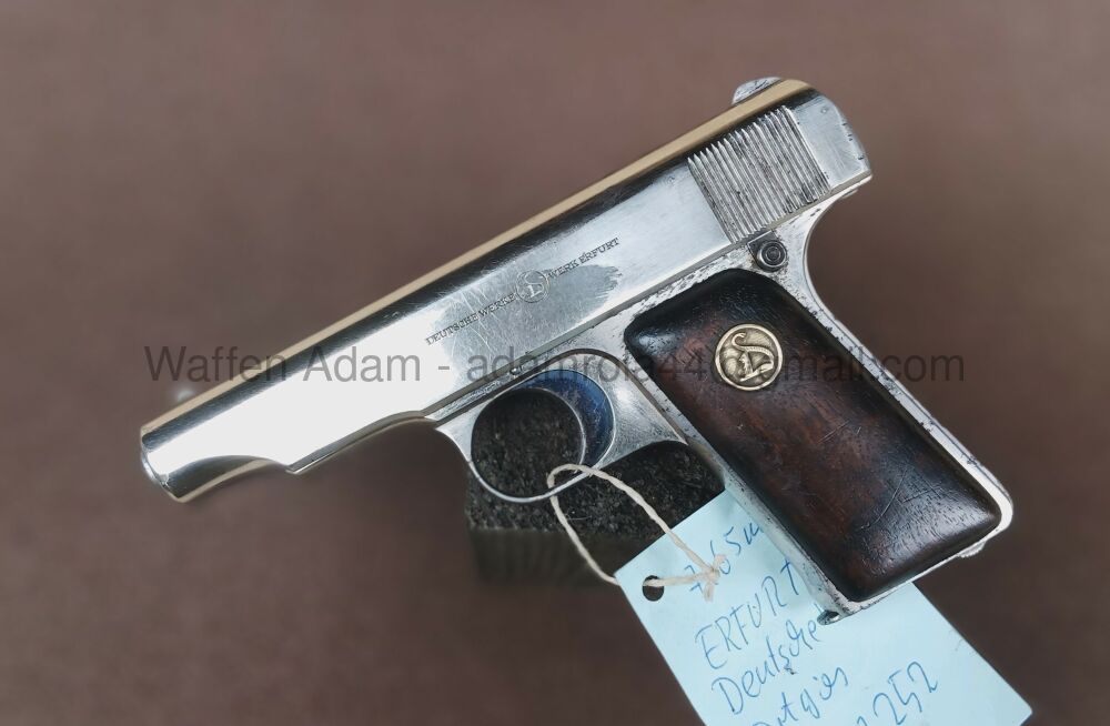 Ortgies Pistole, Deutsche Werke, Werk Erfurt, original Werksvernickelung, Nussholz Griffschalen, korrektes vernickeltes Ortgies Magazin. Gebläuter Abzug und Zerlegehebel, Handballen Sicherung, Schlagb... ...weiterlesen