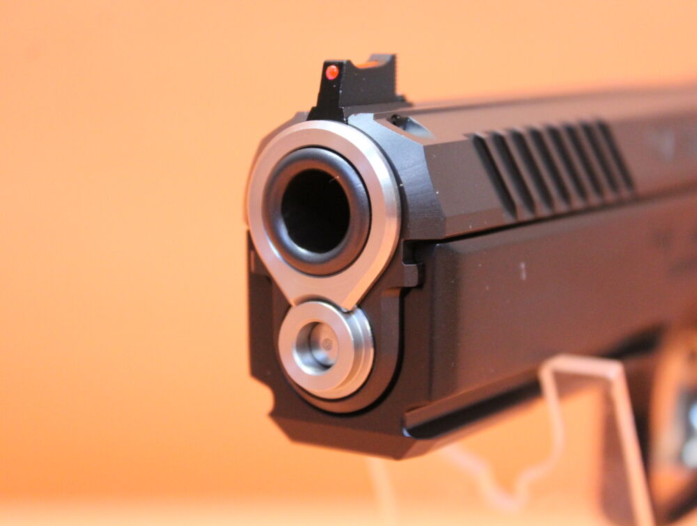 Sondermodell mit handangepasster Barrel Bushing (Laufführungsbuchse) zur Präzisionsförderung.