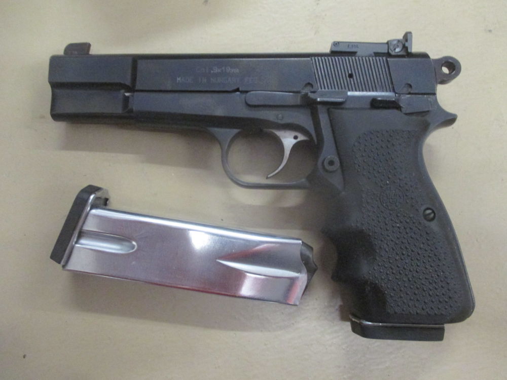 Pistole 9 mm Luger, FEG Mod. Highpower mit Hogue Griff und LPA Visier