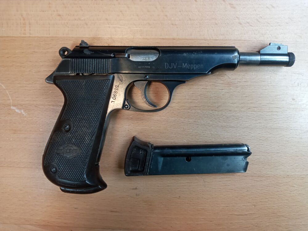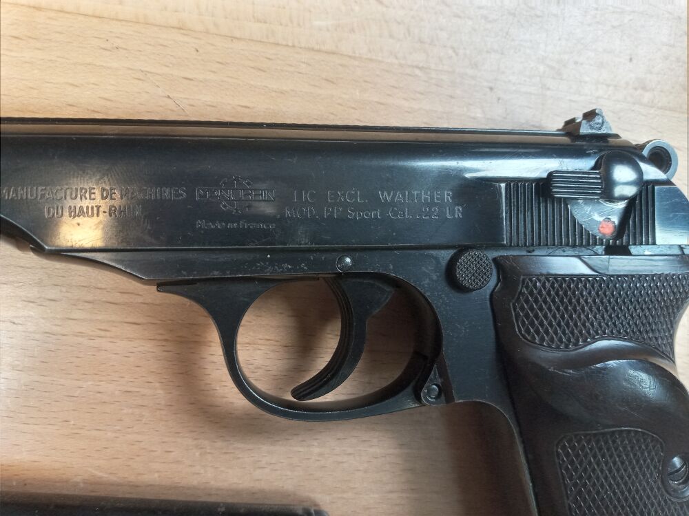Pistole  Walther - Manurhin Model PP Sport  Kaliber .22 lr  Lauflänge 145 mm Reservemagazin  Kunstoffkoffer  Bedienungsanleitung    ...weiterlesen