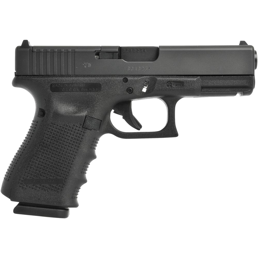 Die Glock 19 im Kaliber 9 mm Luger stellt die Kompakt-Version der Glock 17 dar und verfügt daher über reduziertere Abmessungen, wodurch sie vielseitig verwendbar wird. So findet sich ihr Einsatzgebiet beispielsweise bei Behörden oder als bequem zu tragende Zweitwaffe.