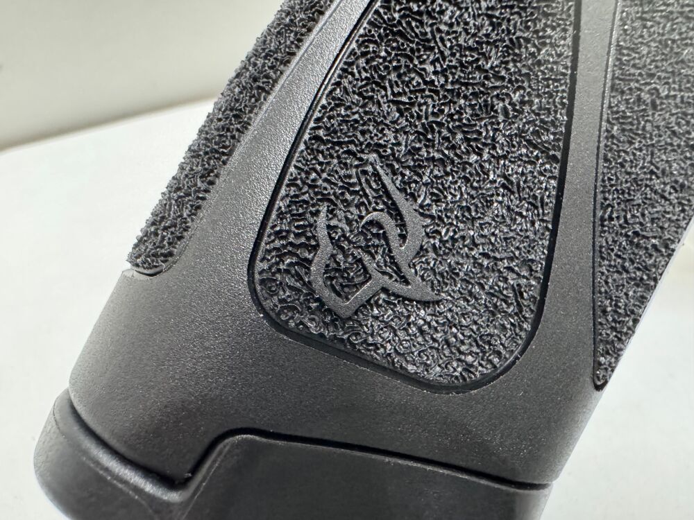 - maximaler Halt dank Schlittenrillen, Daumenmulden und Gripflächen