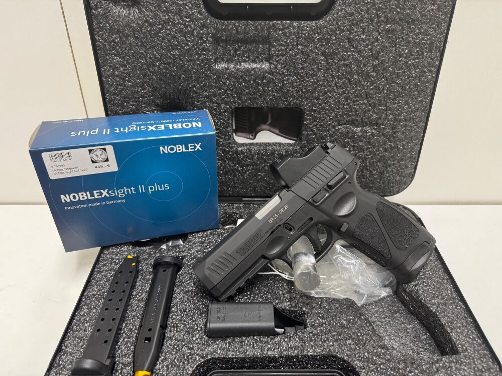 Taurus G3 T.O.R.O. ist eine hervorragende Selbstladepistole des brasilianischen Qualitätsherstellers TAURUS! Im Lieferumfang der sehr formschönen Pistole befinden sich insgesamt 3 Magazine und wir bieten diese Optic Ready Variante direkt mit passenden Noblex Sight II plus an. Dieses kleine sich selbst in der Helligkeit regulierende und abschaltende Red-Sight Reflexvisier macht aus der zuverlässigen und neben den automatischen Sicherungen sogar mit manueller Sicherung ausgerüsteten Pistole ein präzises Sorglospaket zum angenehmen Preis!