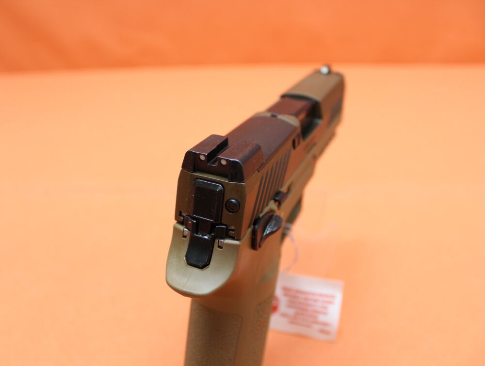 99mm Lauf, feststehende 3-Dot Visierung, Stainless-Schlitten mit Coyote Tan PVD Oberfläche, Optic Ready (abnehmbare Visierplatte kompatibel mit ROMEO1PRO), Polymer-Griffstück Coyote (Carry Length Medium) mit Zubehörschiene (Picatinny), Striker Abzug (ca. 31N), beidseitige Bedienteile: Schlittenfanghebel/ manuelle Sicherung, 17-Schuß Magazin (320CA-9-M18-MS-DE ). Incl. Reservemagazin. Kunststoffkoffer als Transportverpackung.