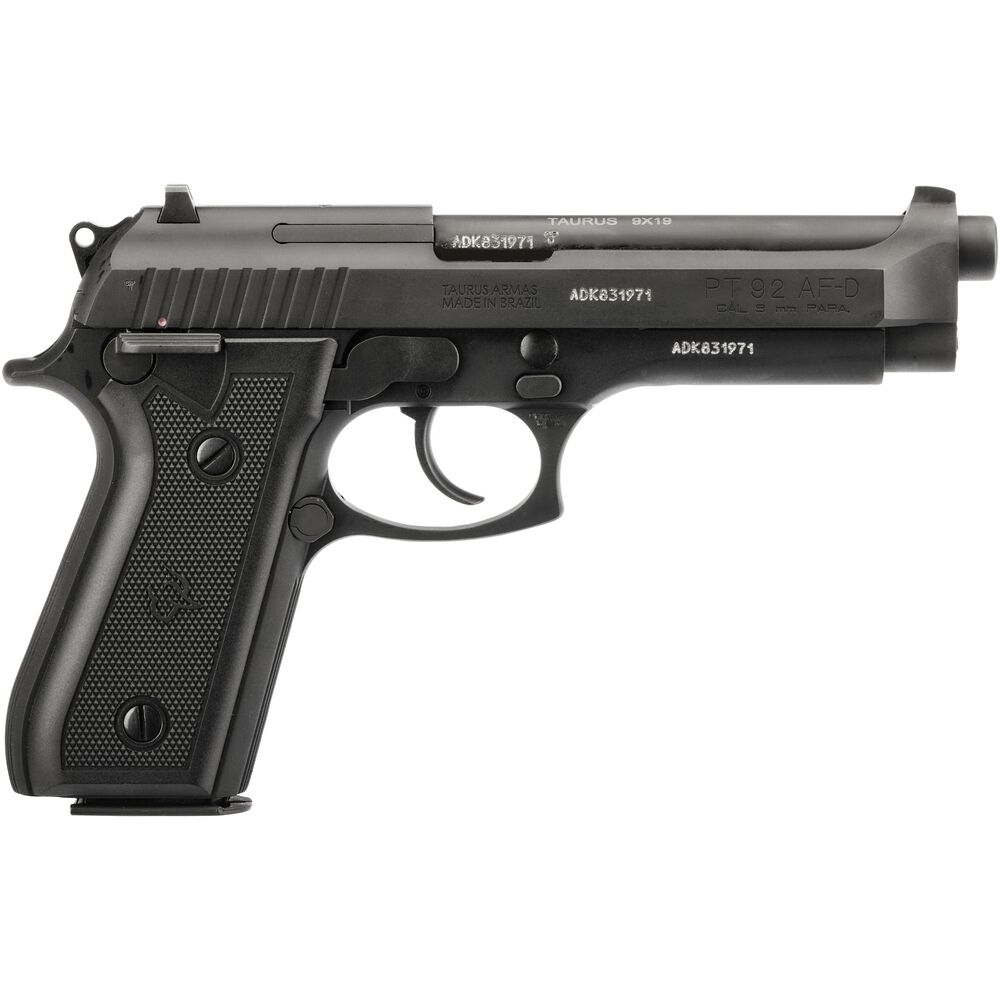 Im Jahre 1980 übernahm Taurus die Beretta Fabrik in S?ao Paulo, Brasilien und begann sofort das Beretta Design zu überarbeiten. Das Ergebnis hieraus ist die bekannte und bei Jägern sowie Sportschützen gleichermaßen, sehr geschätzte Taurus 92. Mit dem aktuellen Modell ist Taurus ein weiterer Schritt in der Entwicklung gelungen. Der aus einer Speziallegierung neu designte Rahmen, ist extrem robust und gibt dem Schlitten einen hervorragenden Halt. Ein weiteres, neues Feature ist die beidseitig am Rahmen angebrachte 3 Positionen Sicherung. Ausgestattet mit Gummi Griffschalen liegt die Waffe sehr gut in der Hand.