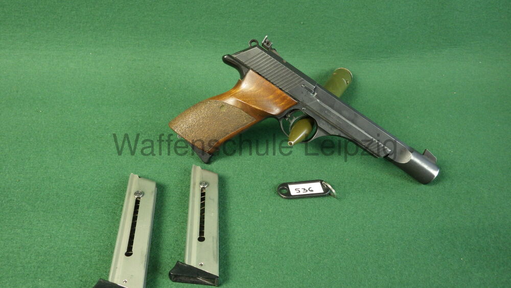 SL Pistole Kal. .22 lfB, Erma Mod. ESP 85A Junior, 2 Ersatzmagazine, Holzgriffschalen, div. Griffspuren ...weiterlesen