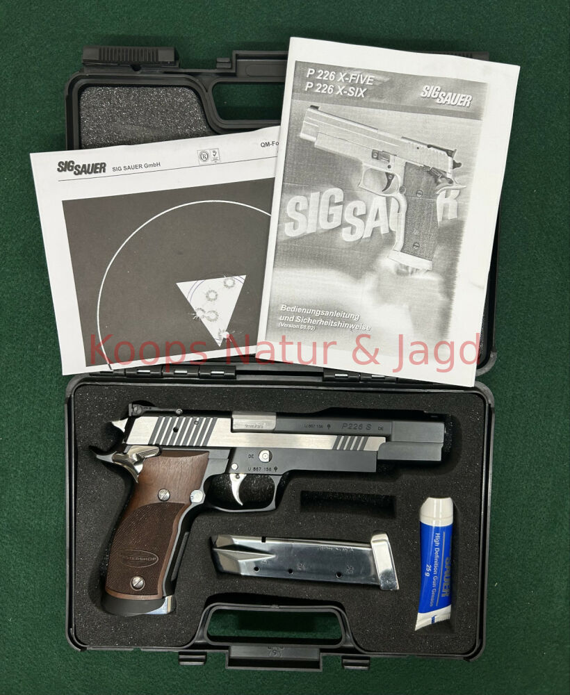 Pistole der Fa. Sig Sauer (Eckernförde) Model P 226 X-Six Black & White Kaliber 9 mm Parabellum Original Koffer 2 Magazine Bedienungsanleitung und Anschussbild Preis EURO 3.600,00 ...weiterlesen