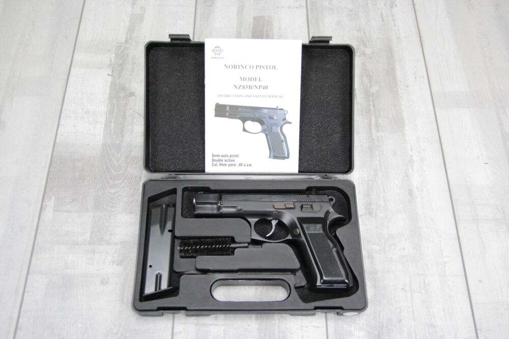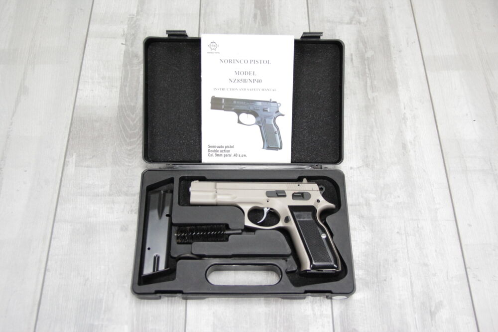 Sofort ab Lager lieferbar Zustand: Neu Hersteller: Norinco Modell: NZ85B Kaliber: 9x19 Magazinkapazität: 15 Patronen Finish: matt verchromt Lieferumfang: Pistole, 2 Magazine, Koff... ...weiterlesen