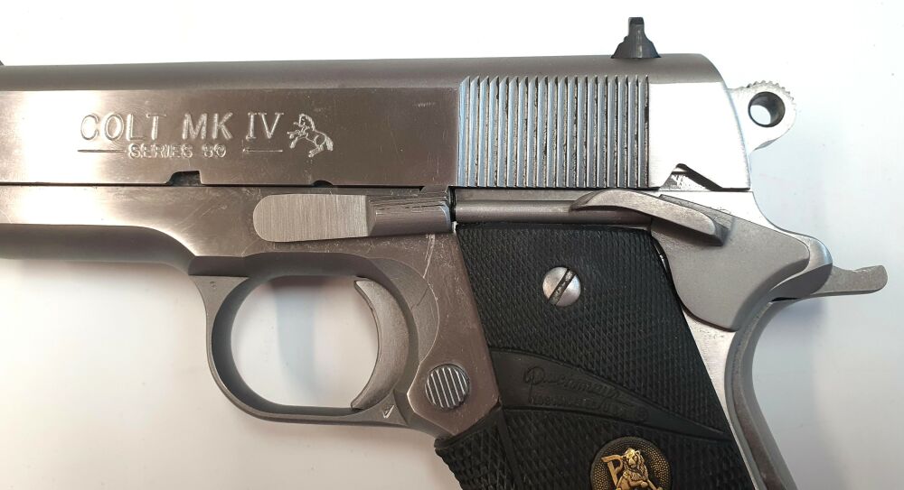 Gebrauchtwaffe Sehr seltene und kompakte Pistole US Colt 1911 MK IV Series Officers ACP Stainless - Kal. 45ACP. Dies ist eine gebrauchte Colt 1911 MK IV Serie 80 Stainless Officer's Mode... ...weiterlesen