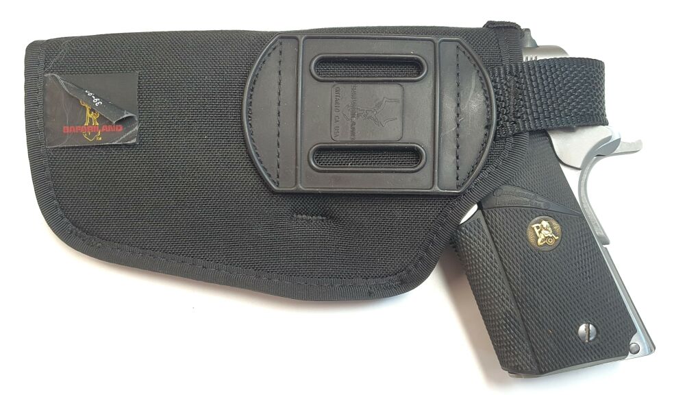 Dies ist eine gebrauchte Colt 1911 MK IV Serie 80 Stainless Officer's Model Pistole im Kaliber 45 ACP. Sie verfügt über einen 3,5-Zoll-Lauf, ein 6-Schuss-Magazin, feste Visierung, Daumensicherung, Griffsicherung, Holster, und Gummi Pachmayr Griffschale. Insgesamt befindet sich diese Colt in gutem Zustand mit normalen Gebrauchsspuren an Lauf, Schlitten und Rahmen. Laut Colt-Seriennummernsuche wurde diese Pistole 1987 hergestellt. Sie eignet sich gut zum verdeckten Tragen.