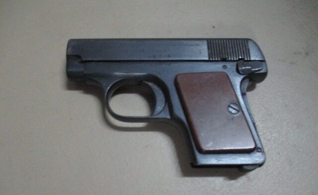 Pistole 6,35 mm Browning Vorgänger der FN Baby, ohne Magazin.