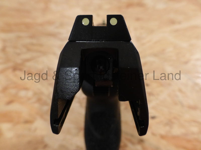 - Offenes Balkenvisier mit nachleuchtenden Kontrastpunkten (nicht radioaktiv)