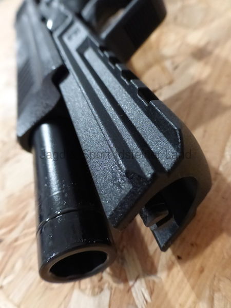 - Riffelungen hinten und vorne am Verschluss erleichtern das Durchladen