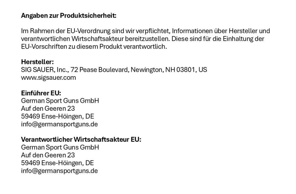 Im Rahmen der EU-Verordnung sind wir verpflichtet, Informationen über Hersteller und verantwortlichen Wirtschaftsakteur bereitzustellen. Diese sind für die Einhaltung der EU-Vorschriften zu diesem Produkt verantwortlich.