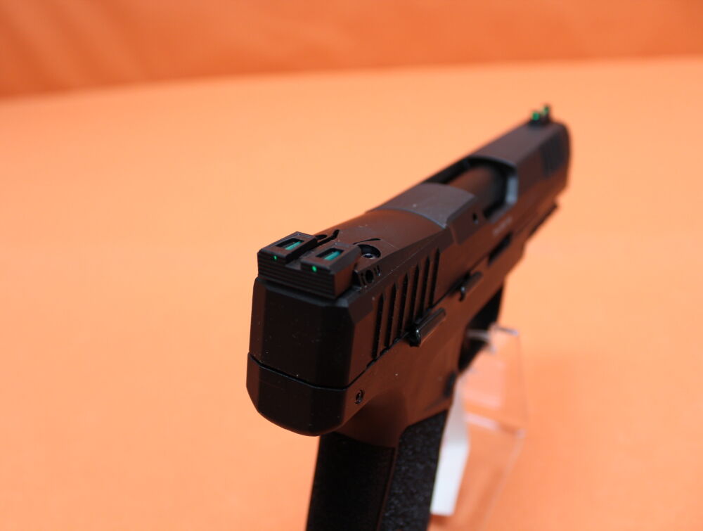 Die brandneue Kurzwaffe im Kaliber .22lr ist mit erstklassigen Features ausgestattet. Der 4“ Lauf aus Carbon Stahl kommt inklusive Gewindelaufadapter für die Montage eines Schalldämpfers. Die Pistole kommt außerdem Optic-Ready, d.h. dass sich unter der abnehmbaren Kimme eine spezielle Ausfräsung befindet, mit der Sie ohne Adapterplatten ein RomeoZero oder ein Rotpunktvisier mit selben Footprint montieren können. Mit ihren beidseitigen Bedienelementen, dem austauschbaren flachen oder gebogenen Abzugszüngel und der Fiber-Optik Visierung ist die neue P322 die leistungsstärkste und modernste 22er-Pistole ihrer Klasse.