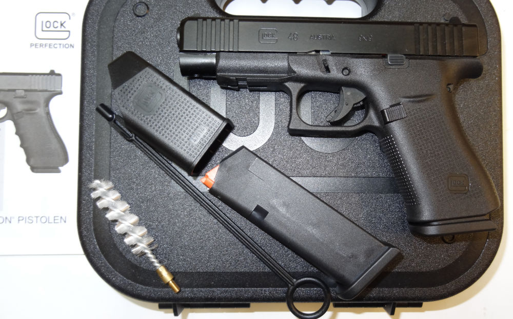 Pistole Glock 48 R/FS Slimline im Kaliber 9mm Para ( 9x19 ) Inkl. Zubehör, Bedienungsanleitung, Reservemagazin, Magazinlader, Putzstab mit Bürste und Kunststoffkoffer.