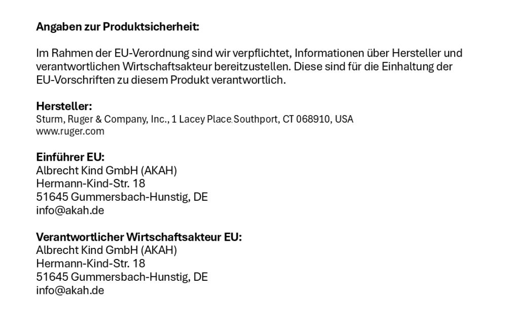 Im Rahmen der EU-Verordnung sind wir verpflichtet, Informationen über Hersteller und verantwortlichen Wirtschaftsakteur bereitzustellen. Diese sind für die Einhaltung der EU-Vorschriften zu diesem Produkt verantwortlich.