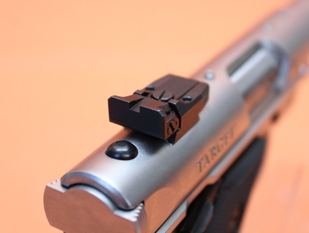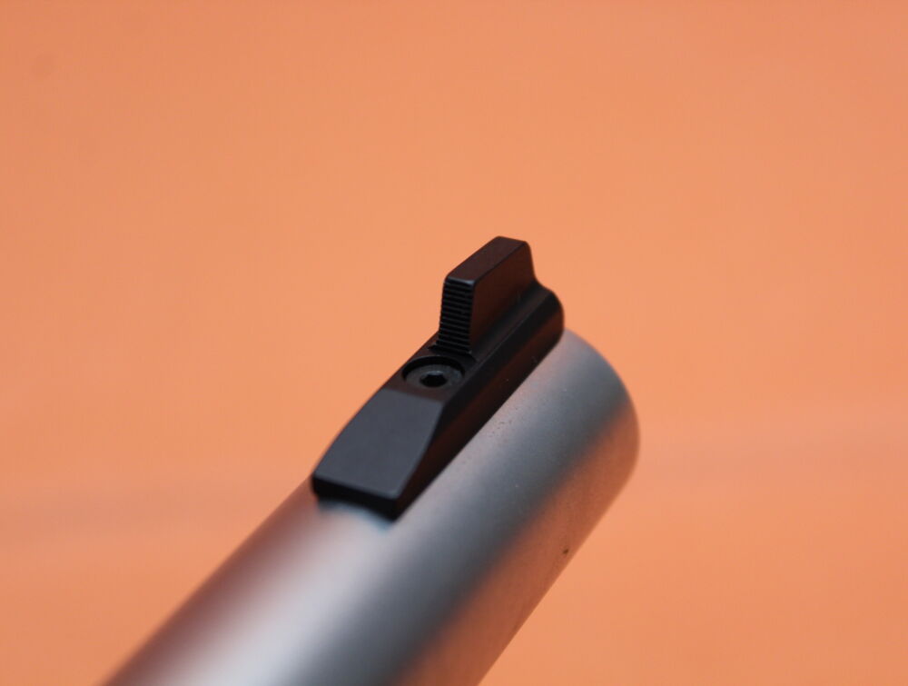 5,5" Lauf/ Bull Barrel mit Scheibenkorn/ einstellbarer Mikrometervisierung, Systemgehäuse mit Montagebohrungen, Stahl-Griffstück mit beidseitiger Sicherung/ schwarze Polymer-Griffschalen mit Fischhaut, 10-Schuss Magazin (40103). Incl. Reservemagazin/ Waffenschloss. Kunststoffkoffer als Transportverpackung.